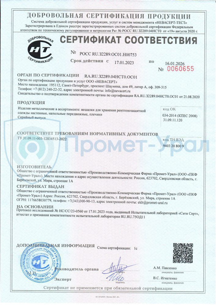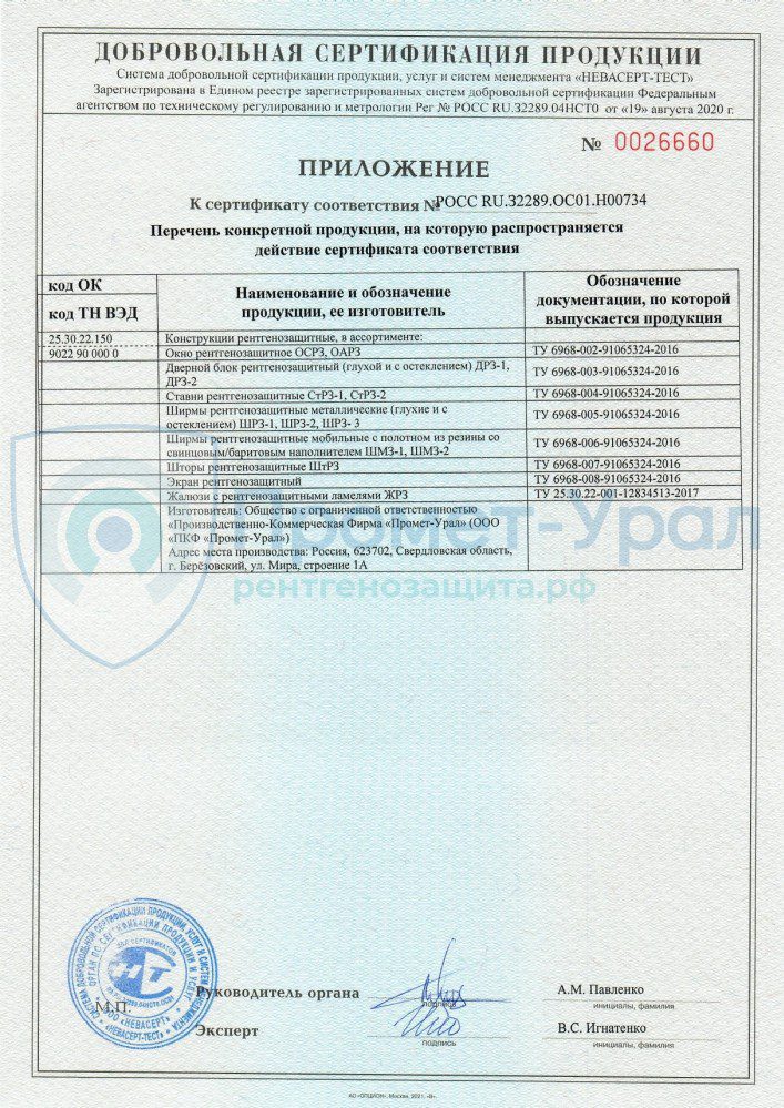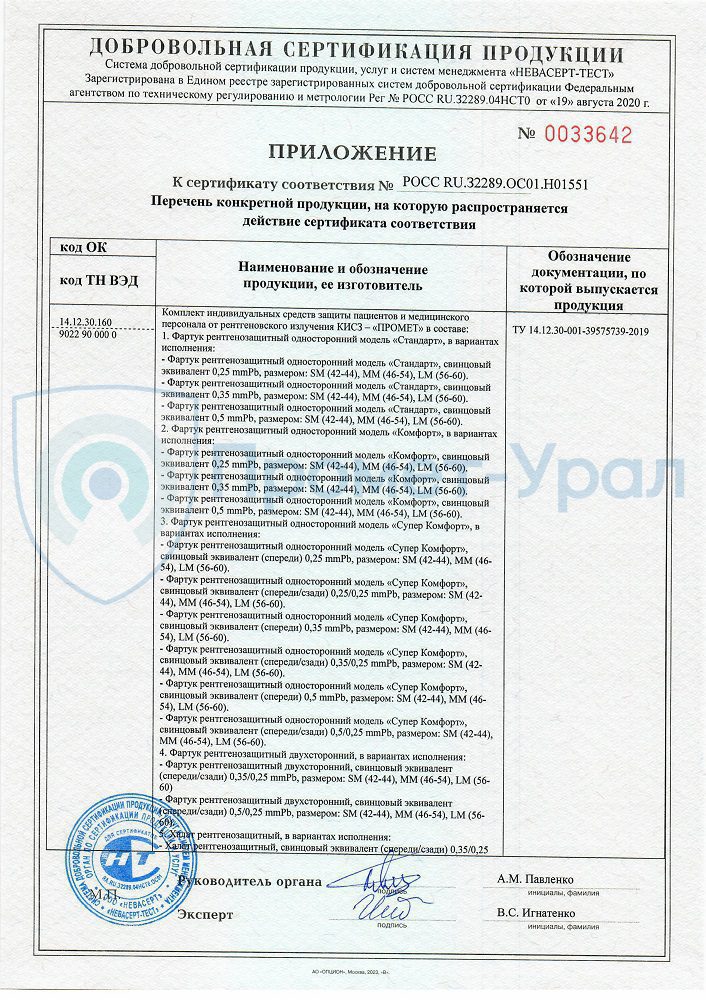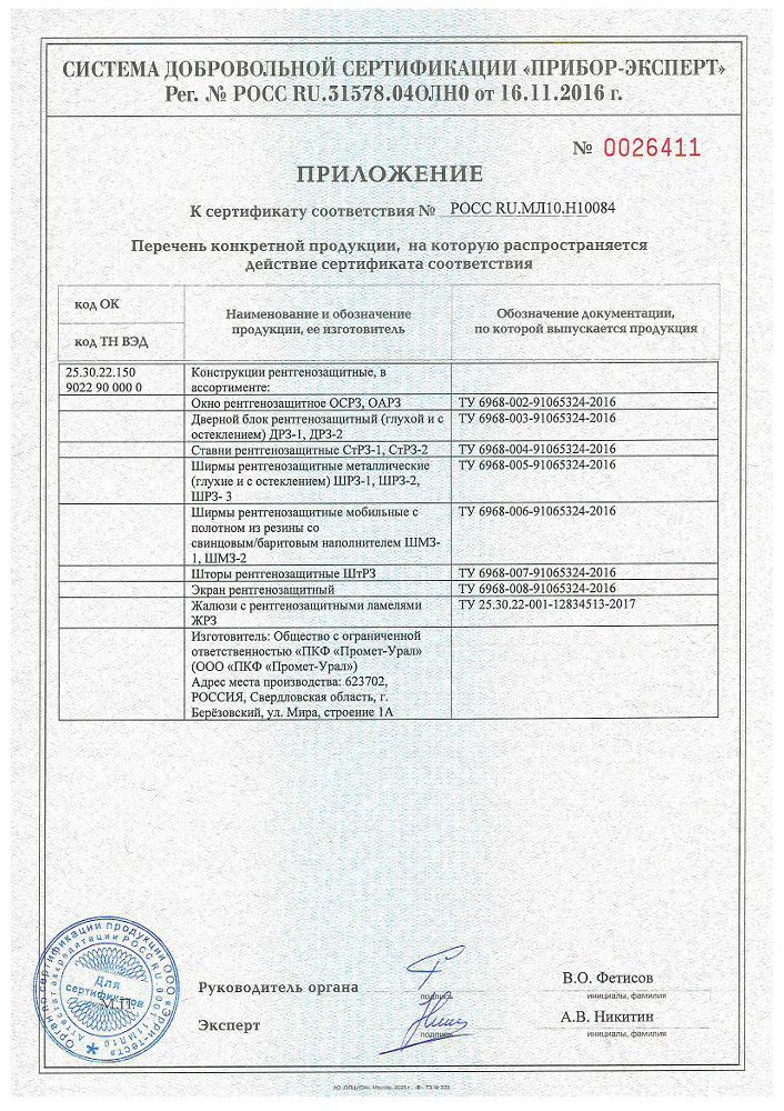 Производство рентгенозащитных изделий Промет-Урал лицензировано. Вся выпускаем рентгенозащитная продукция имеет сертификат соответствия.